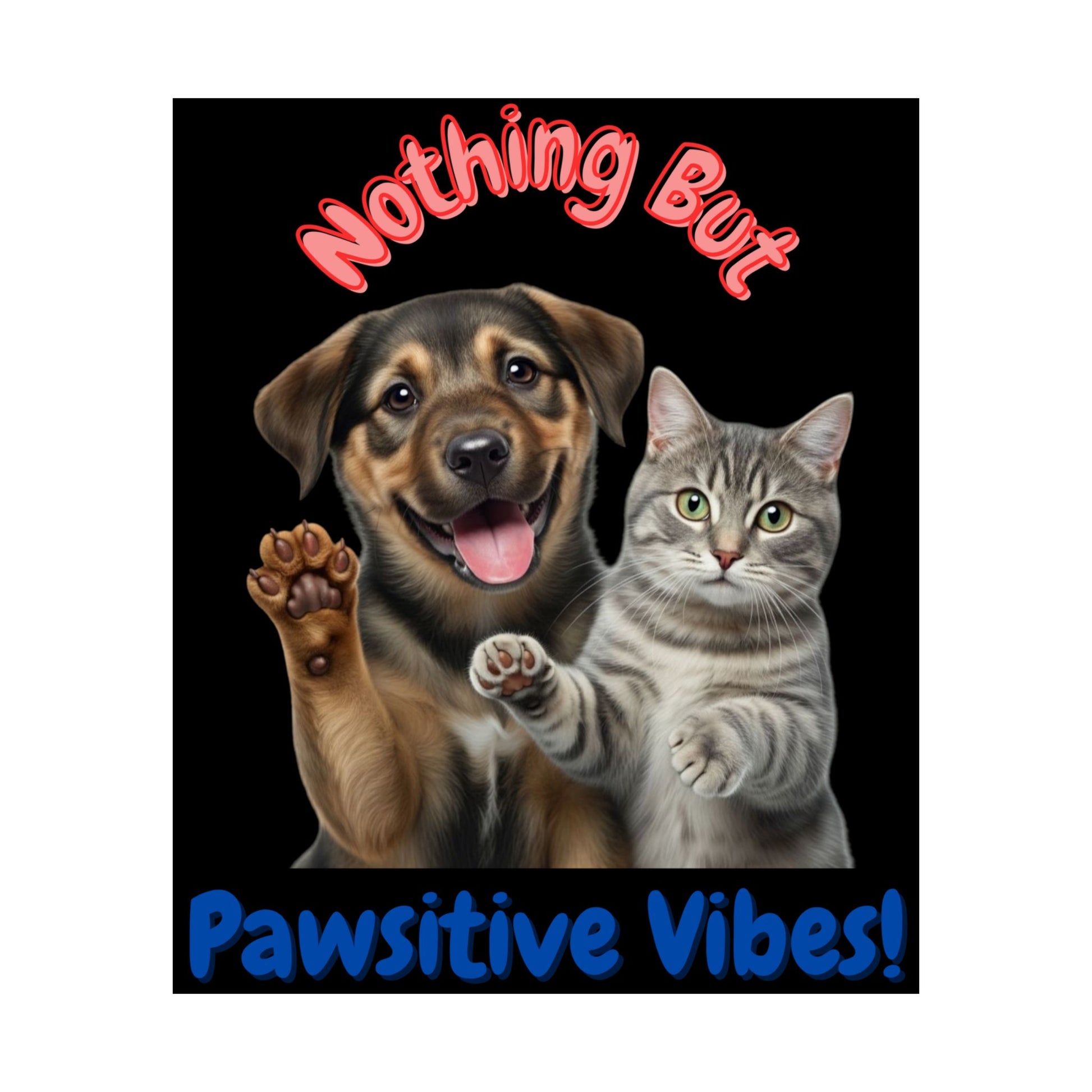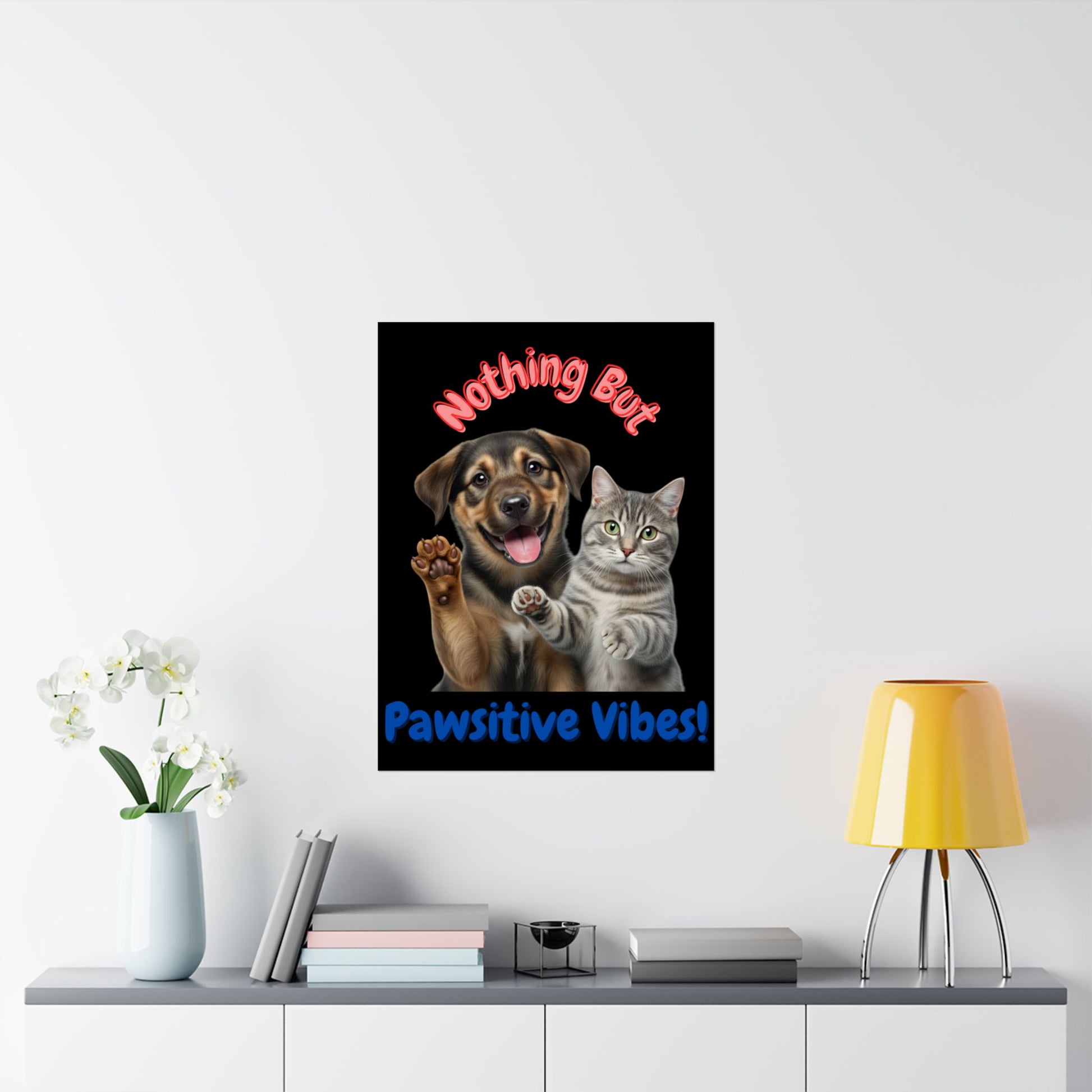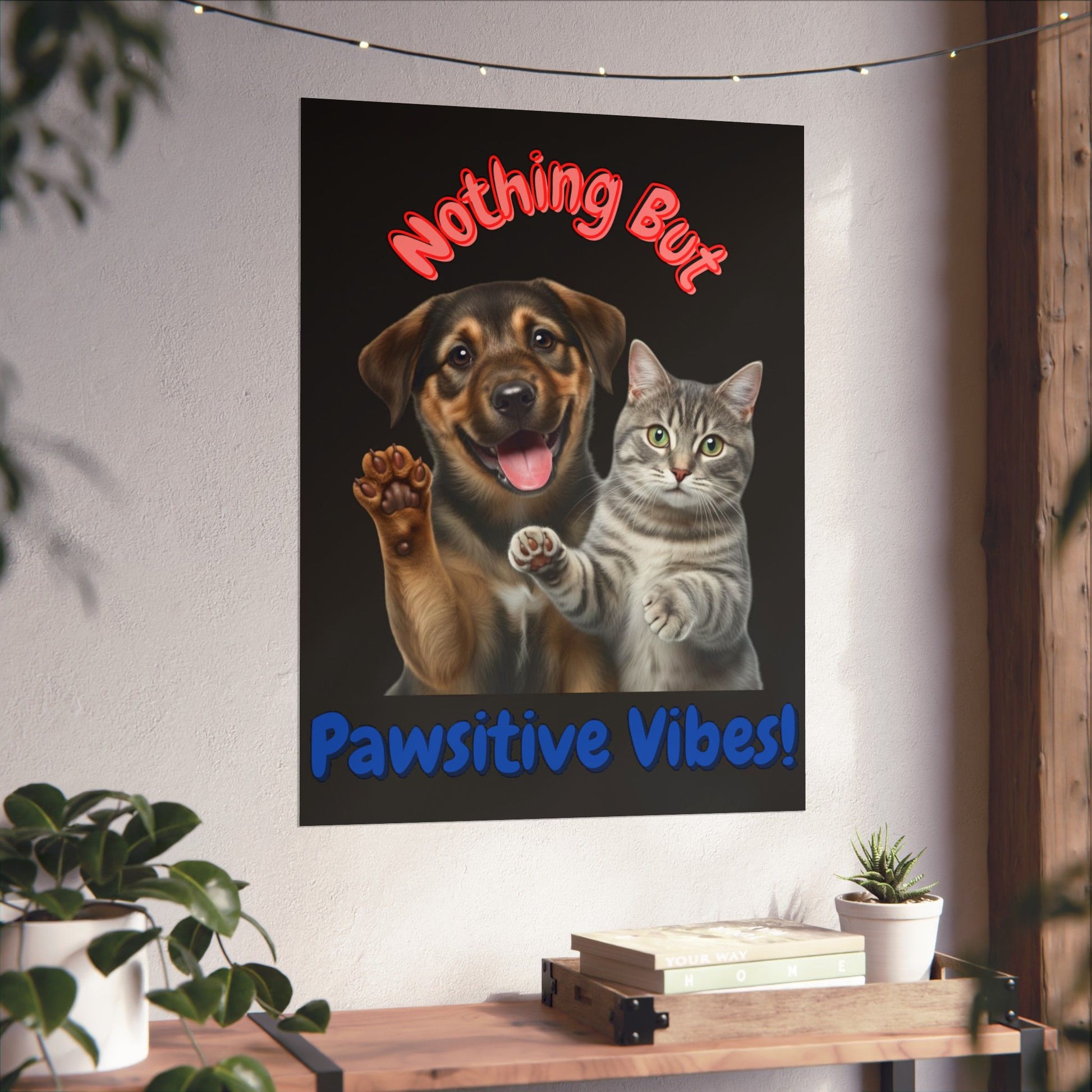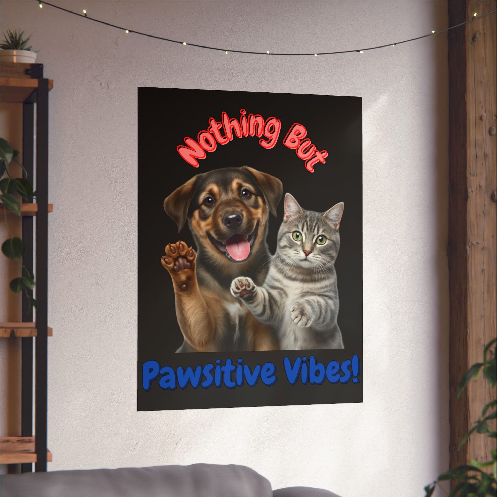 Vertical Poster - Nothing But Pawsitive Vibes Cat Dog Pun