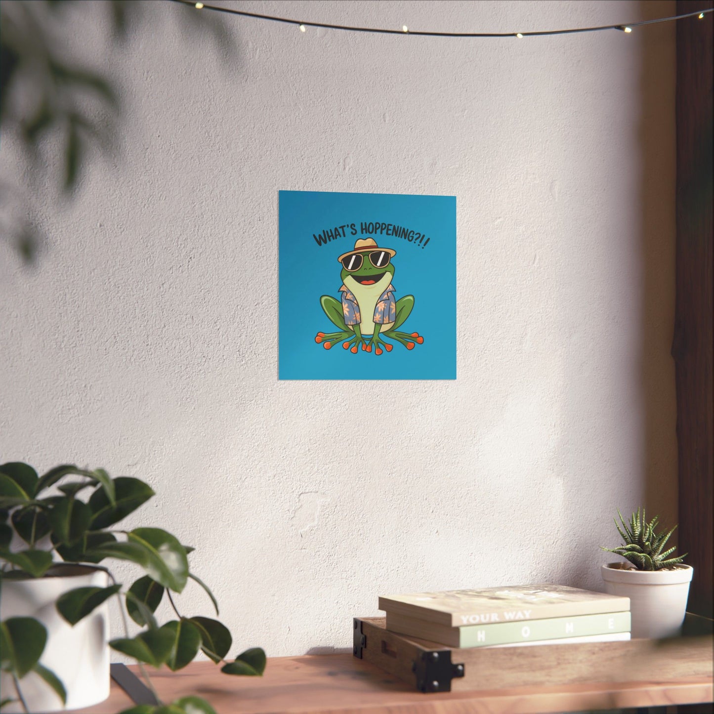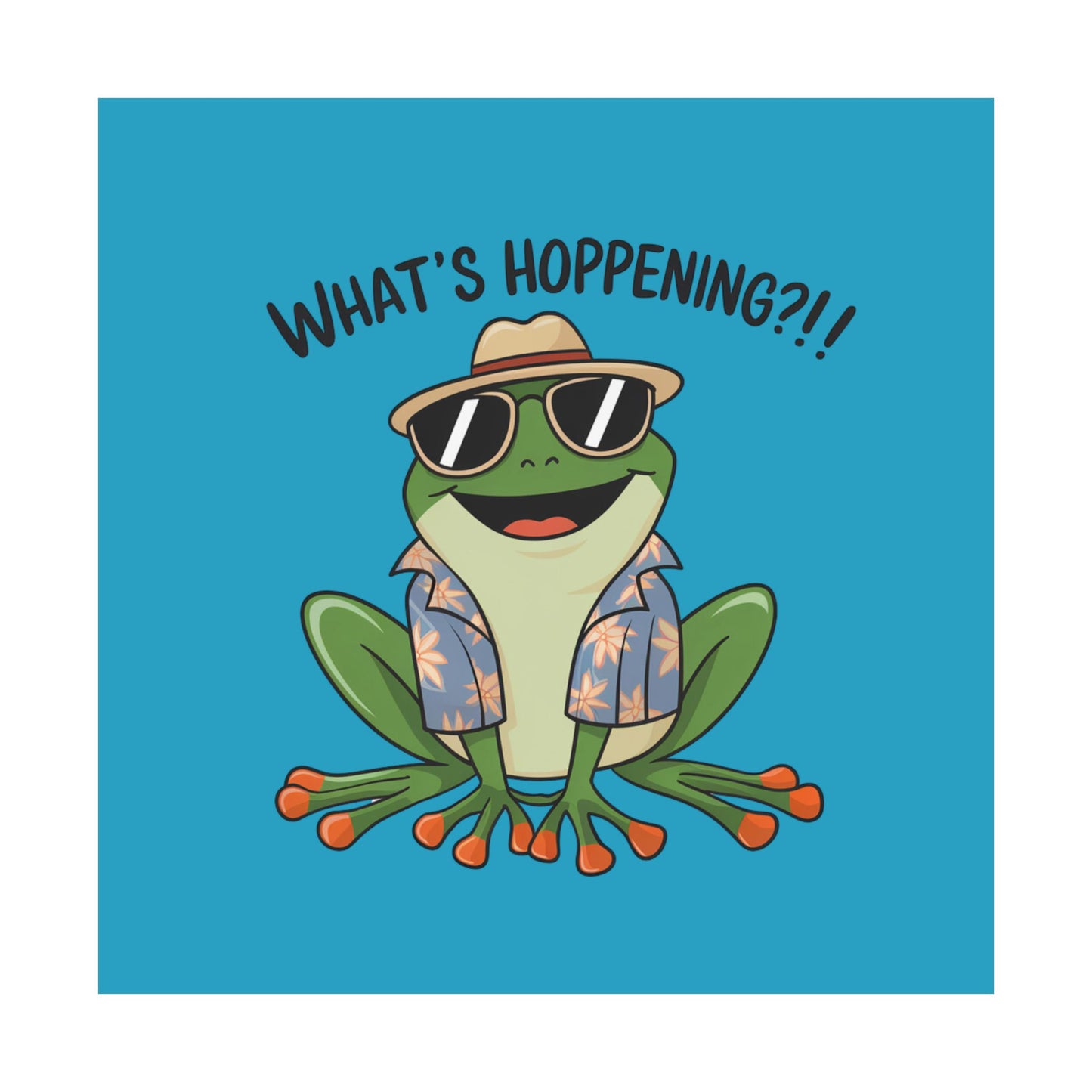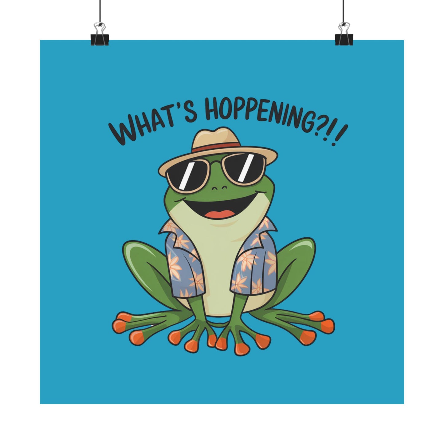 Add a touch of whimsy to your space with this Matte Vertical Poster featuring a fun pun with a frog that states "What's Hoppening". Perfect for frog lovers, pun enthusiasts, and anyone looking to add a playful element to their decor. Great for gifting during birthdays, holidays, or just to brighten someone's day.