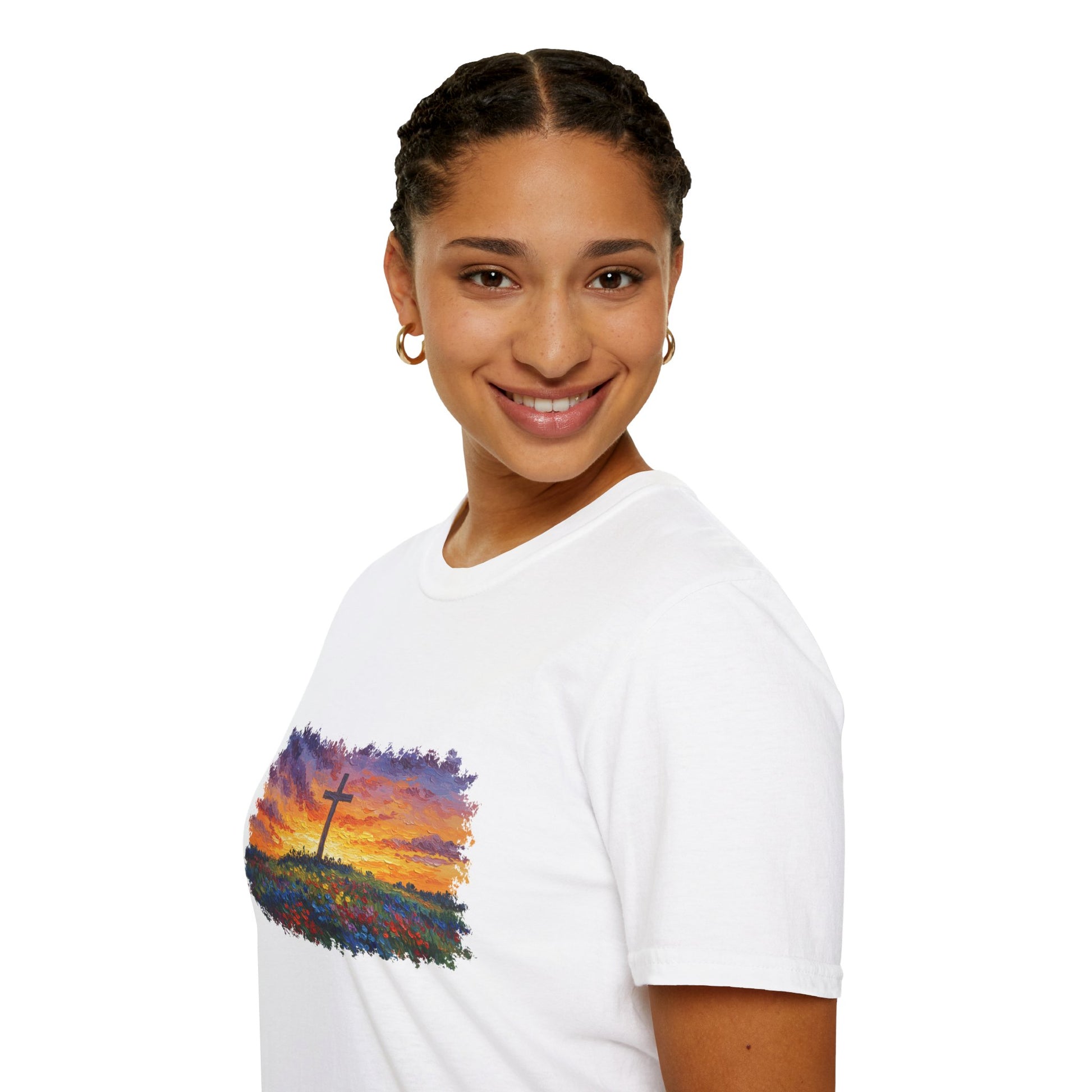 Van Gogh-Style Cross Sunset T-Shirt | Christian Faith Tee, Impressionist Nature Cross Shirt, Sunset Religious Art, Faith & Landscape Gift