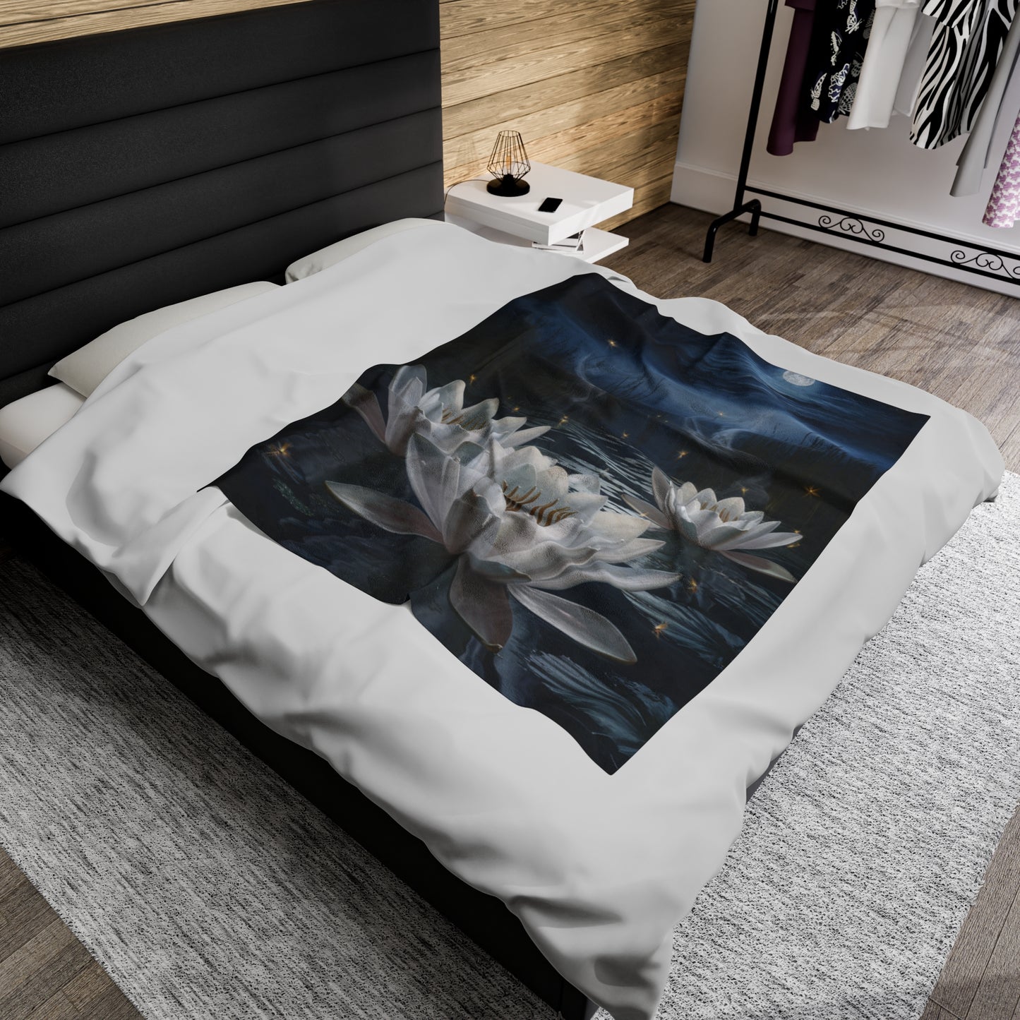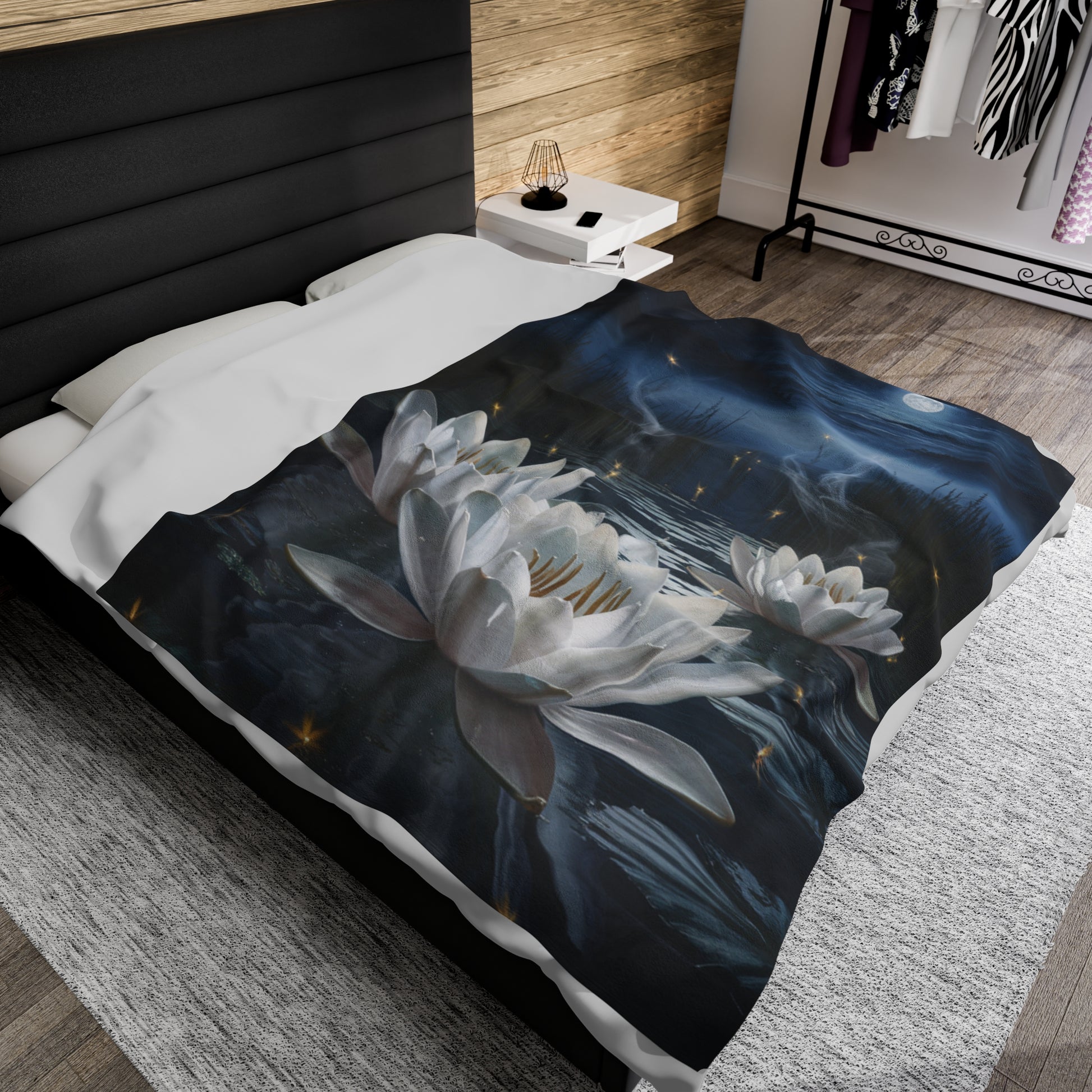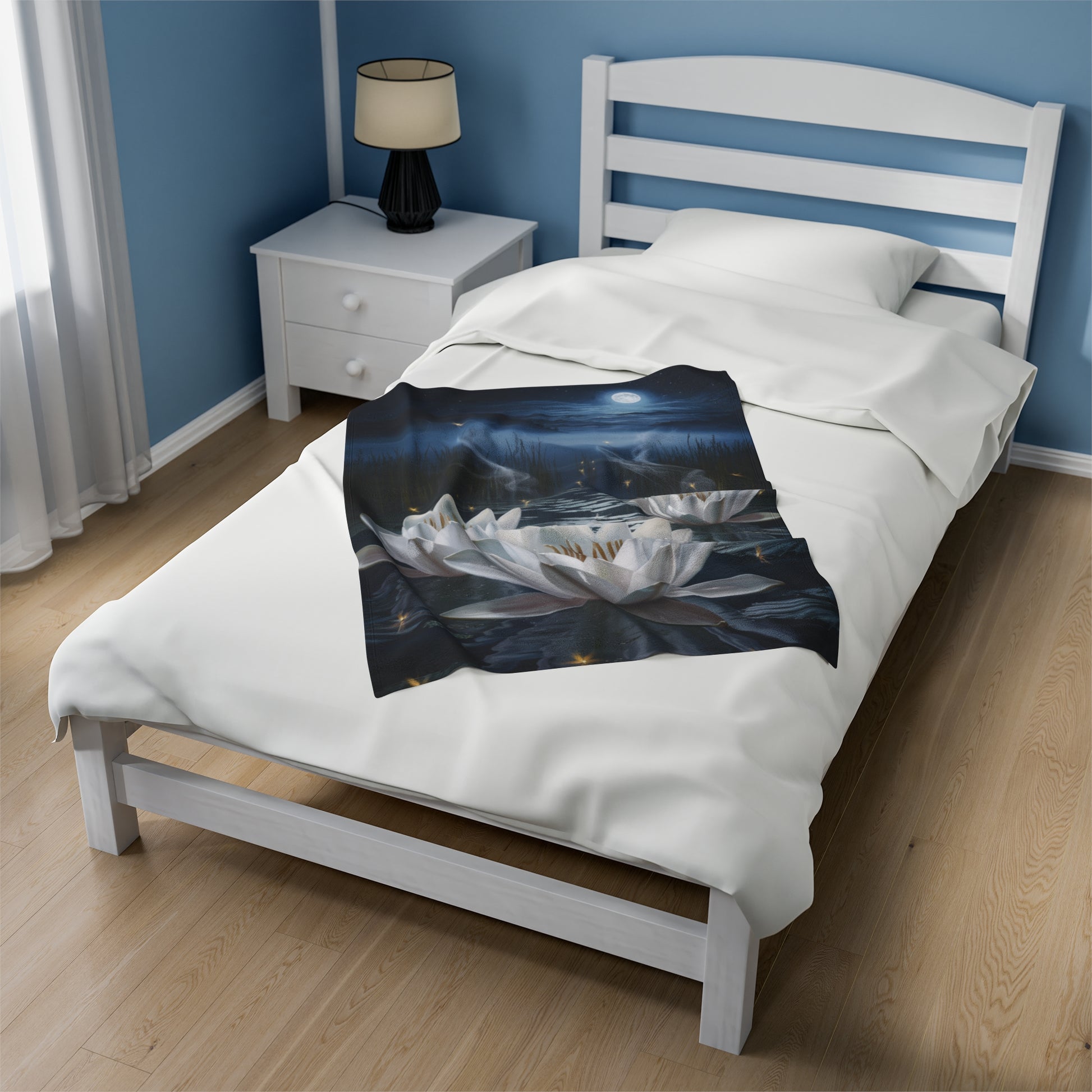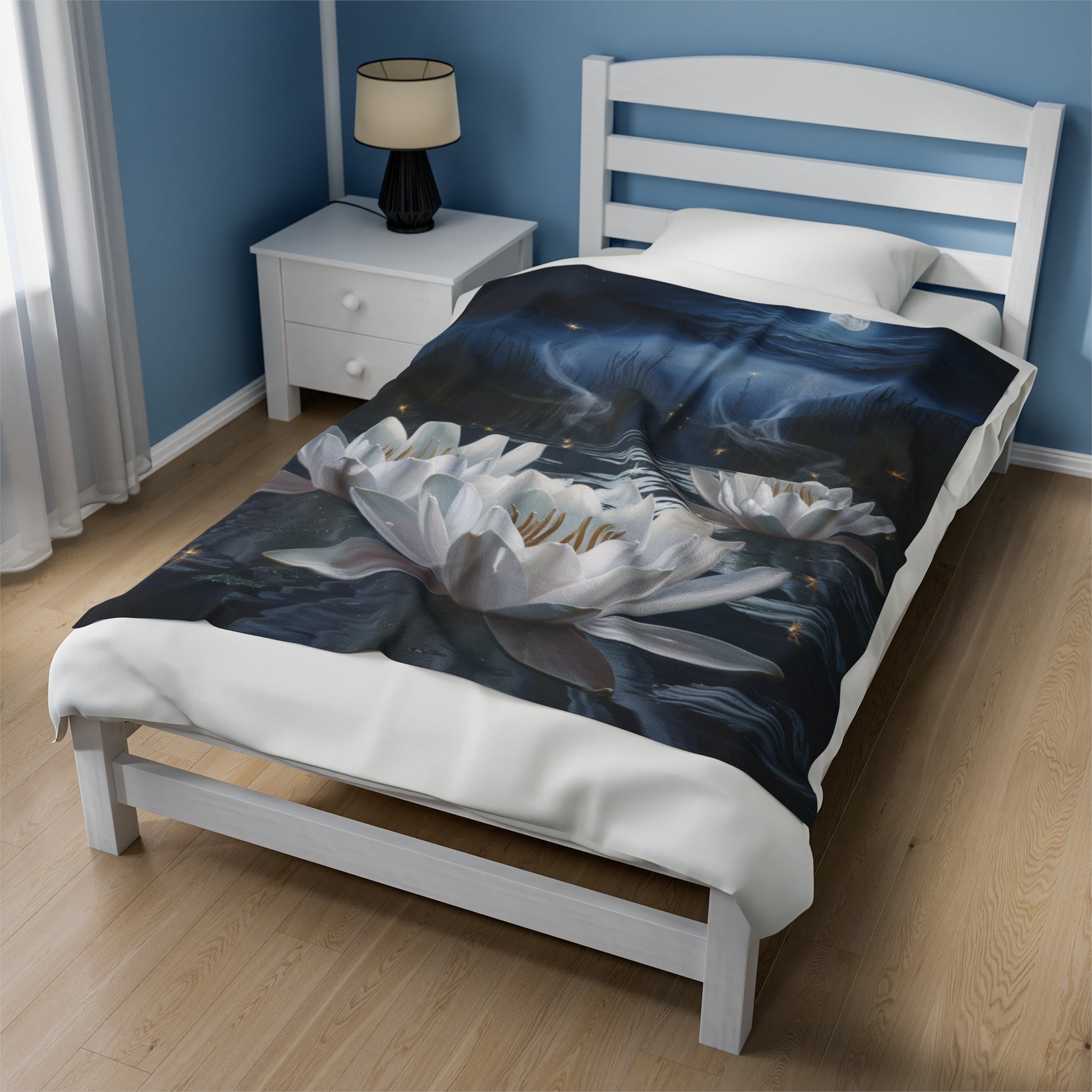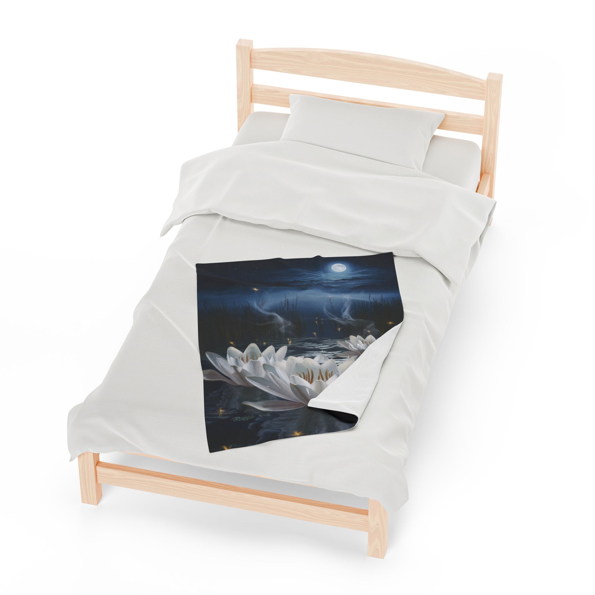 Escape to a peaceful oasis with our breathtaking "Moonlit Serenity" blanket, featuring water lilies shimmering brightly under the soft glow of the moonlight. This tranquil design is sure to bring a sense of calm and relaxation to any room.
