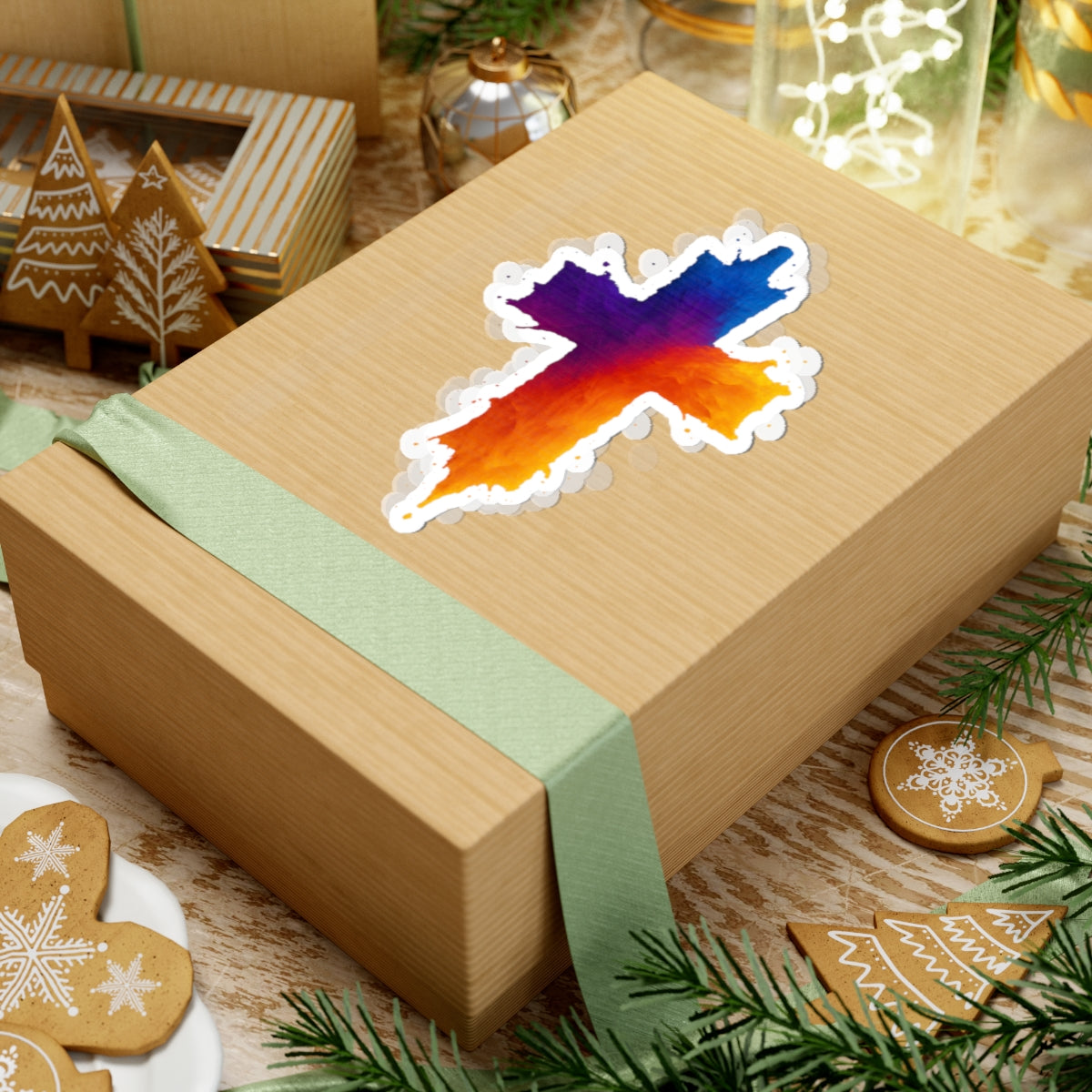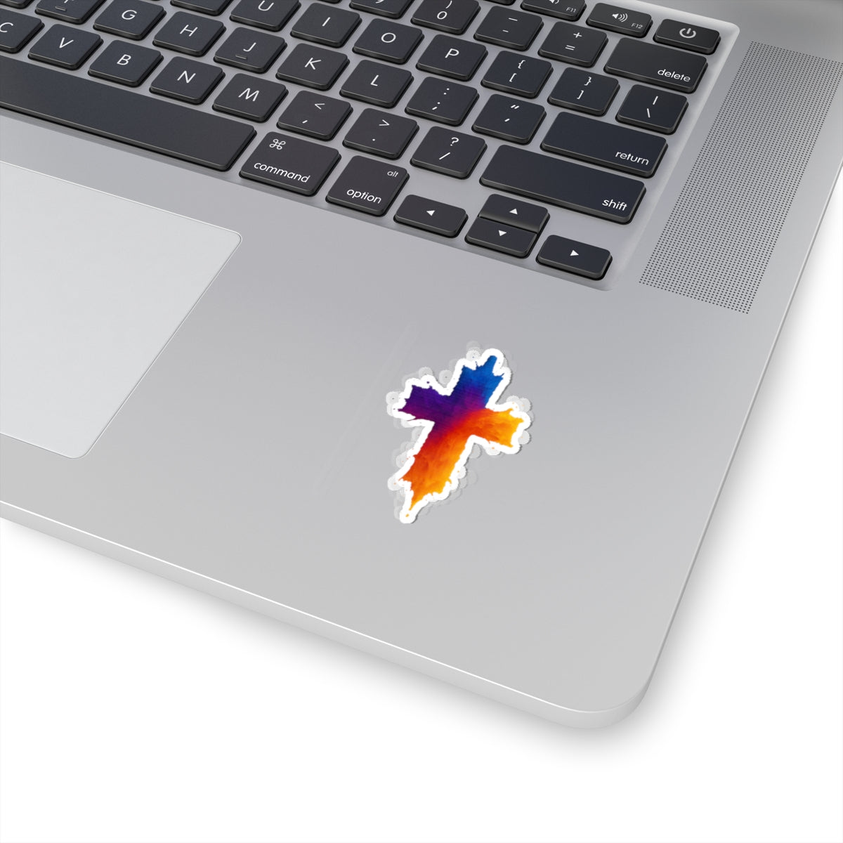 This Watercolor Cross Sticker is a bold and artistic expression of Christian faith. Featuring a vibrant blend of orange, purple, and blue in a cross silhouette, this faith-based sticker is perfect for decorating your laptop, water bottle, notebook, phone case, and more.