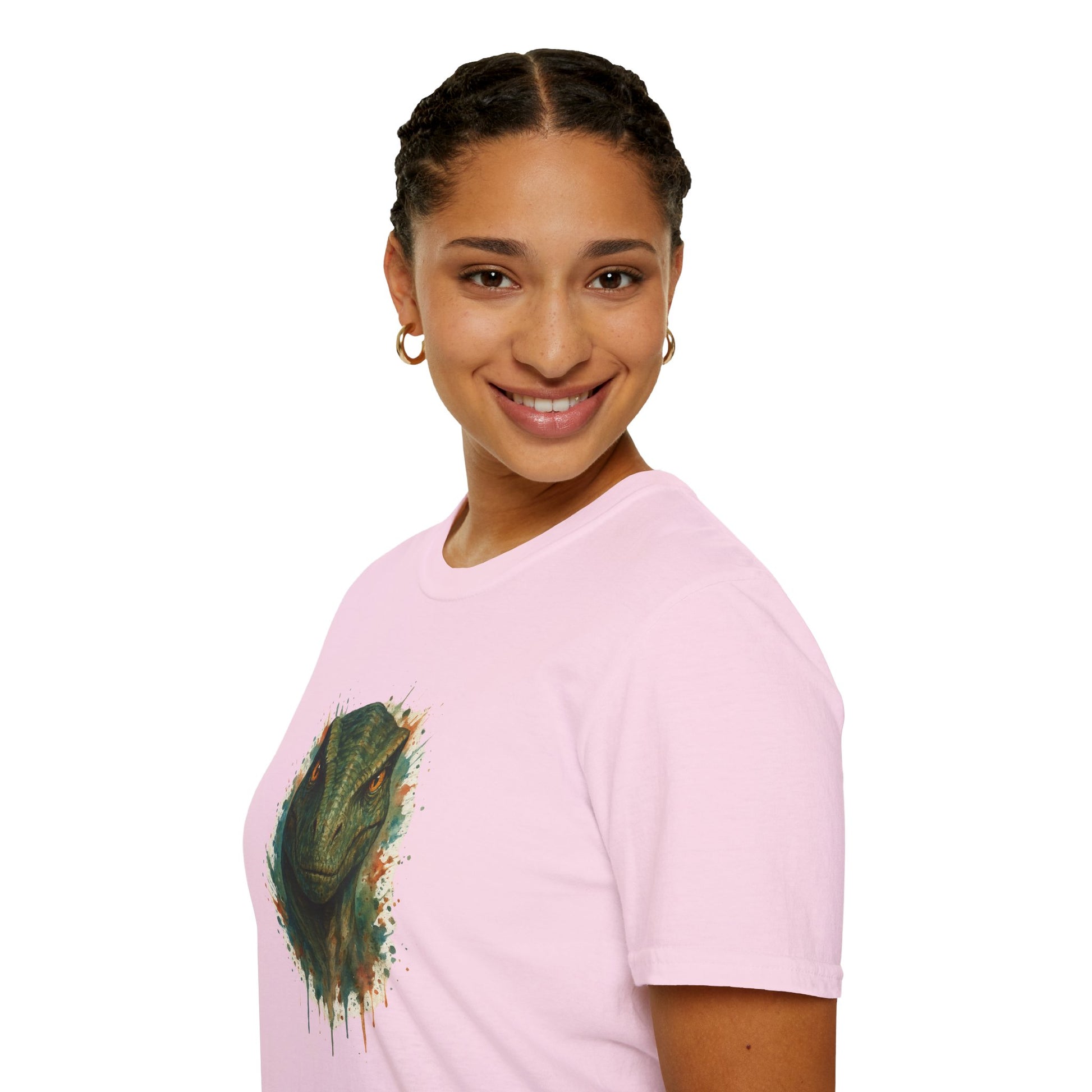 Watercolor Velociraptor T-Shirt | Dinosaur Lover Gift | Artistic Paleo Tee - Unique Dino Art Tee for Men Women Jurassic Apparel