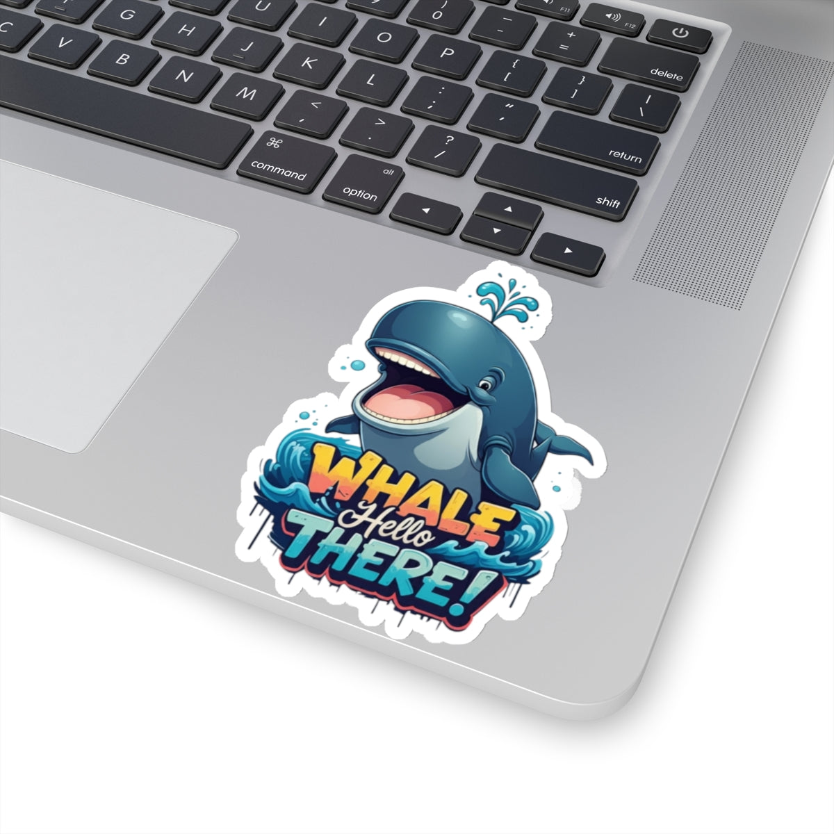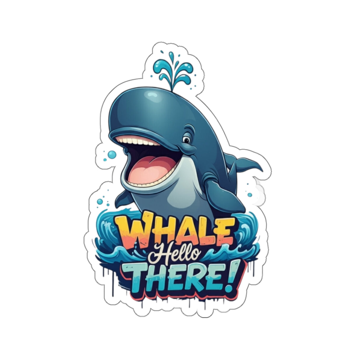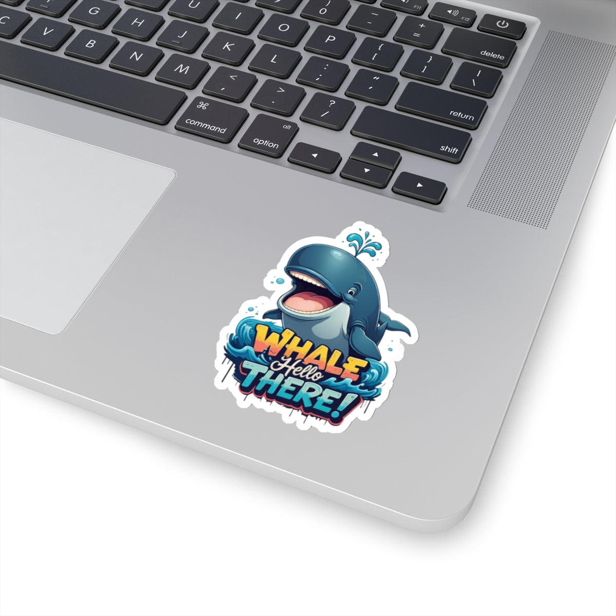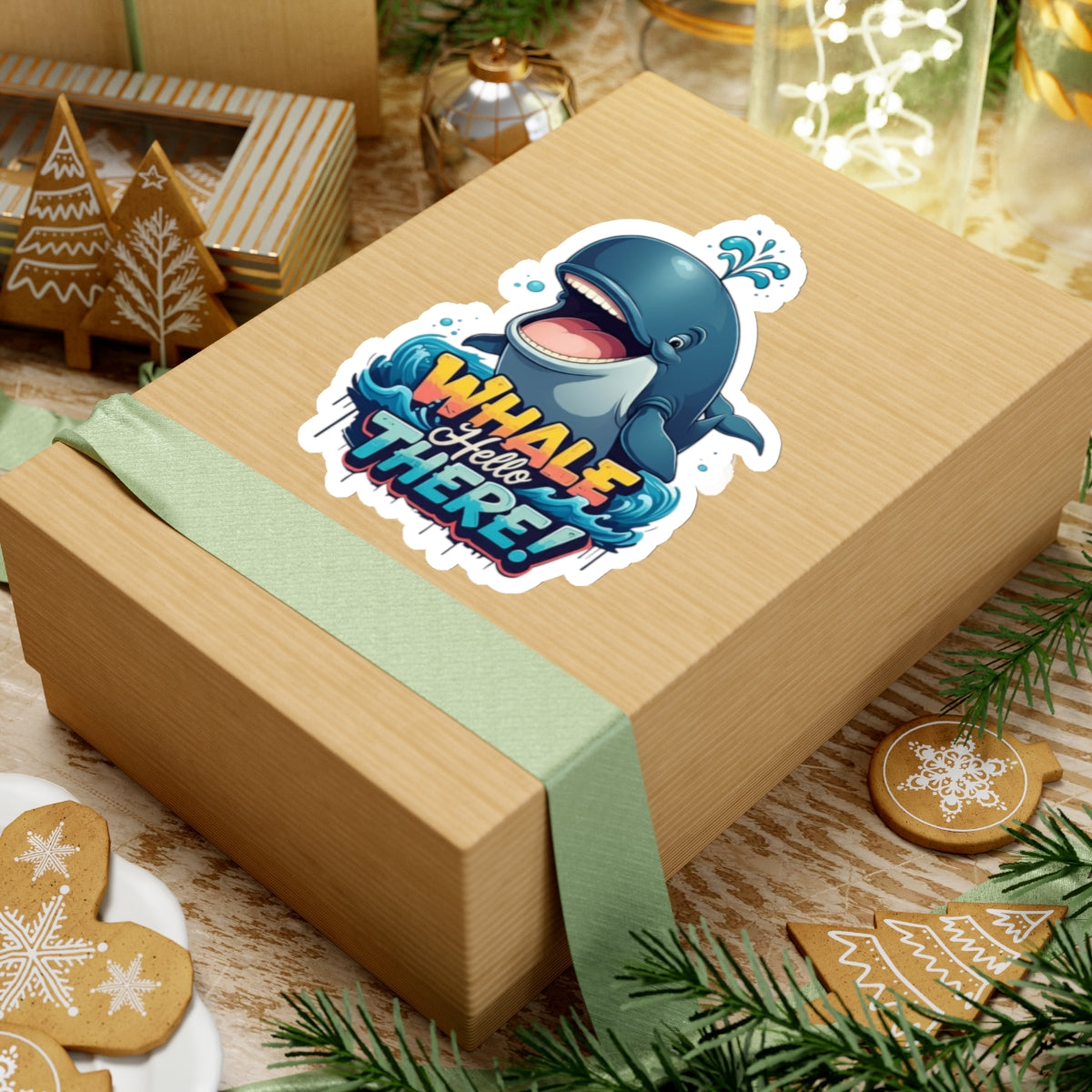 Add a touch of whimsy to your laptop, journal, or window with this fun pun sticker featuring a whale saying 'Whale Hello There'. Perfect for those who appreciate cute and playful designs, and great for gifting on birthdays, Christmas, or just to brighten someone's day.
