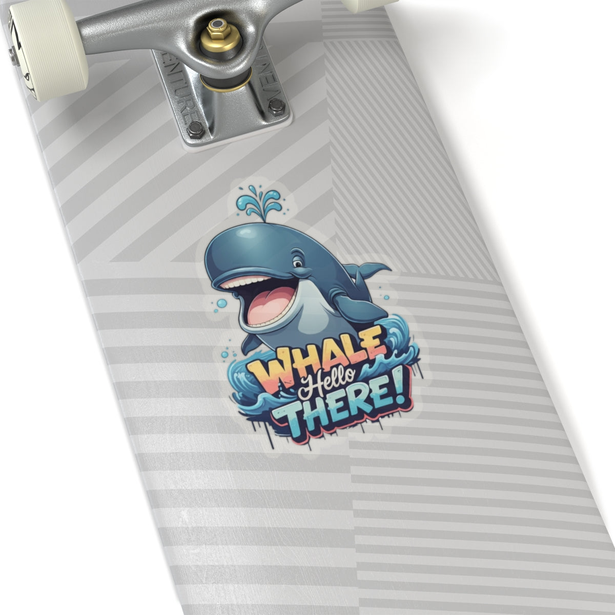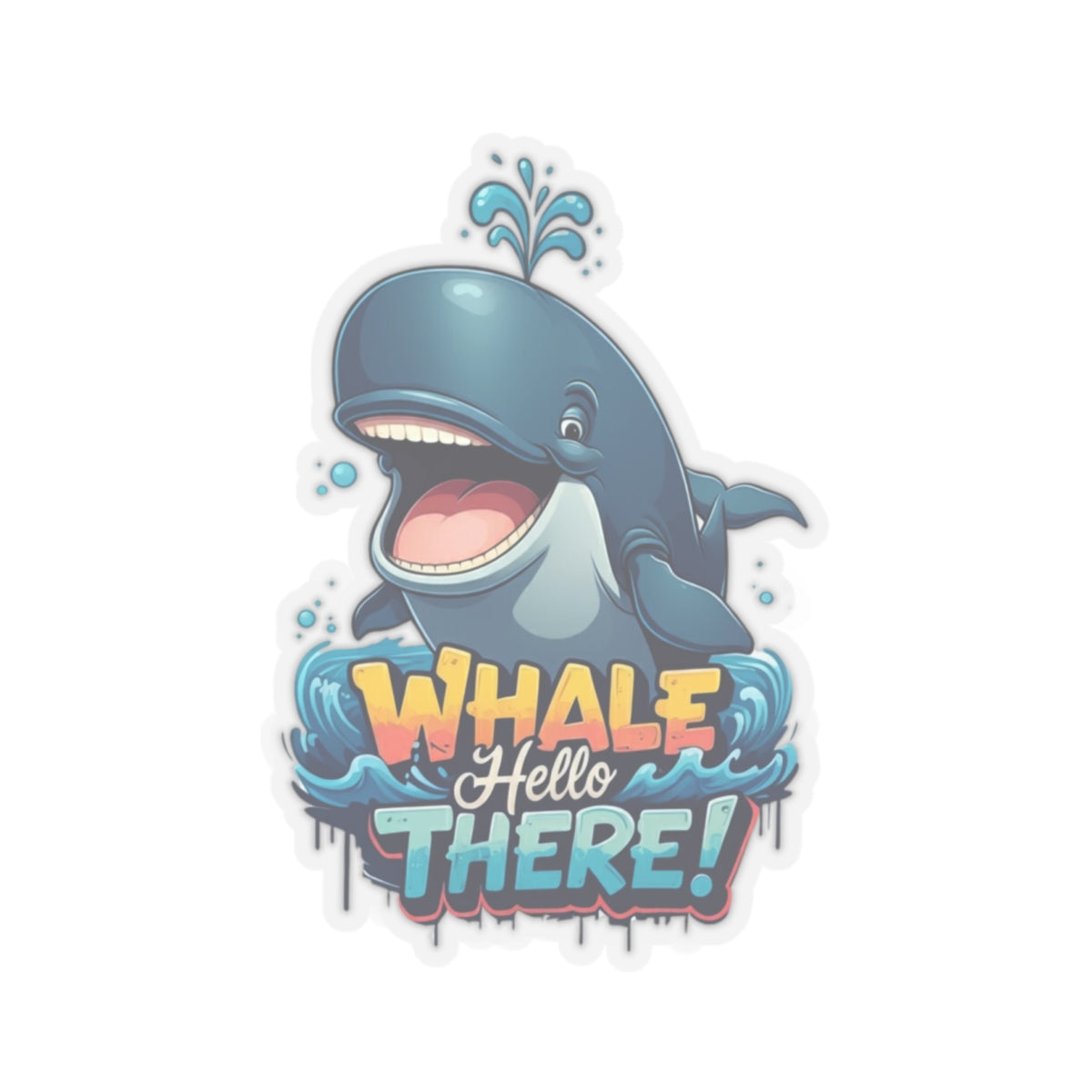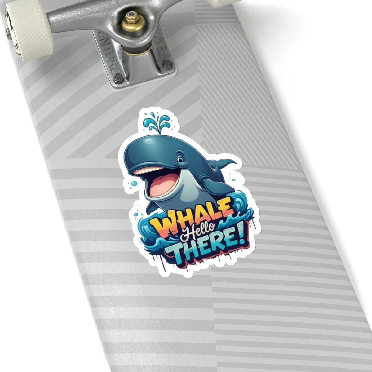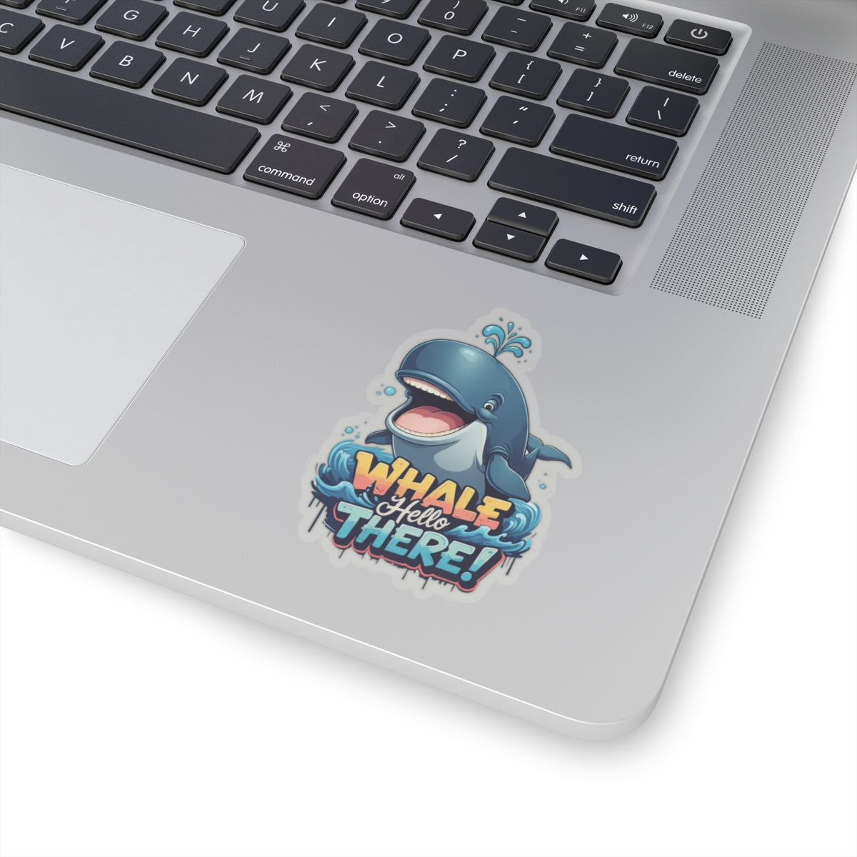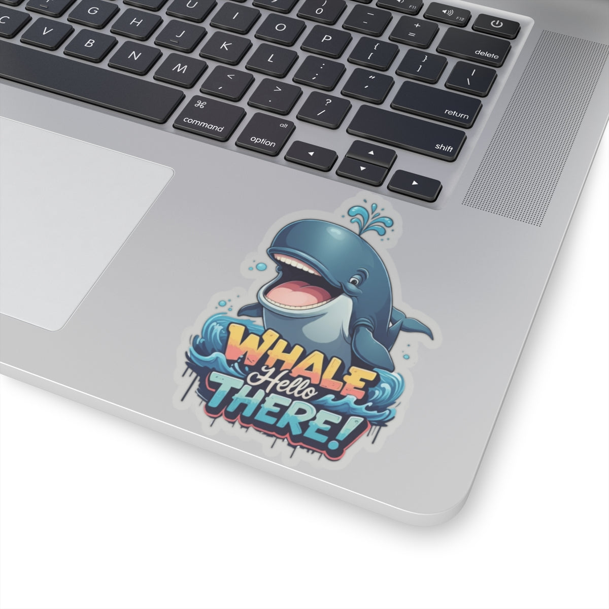 Add a touch of whimsy to your laptop, journal, or window with this fun pun sticker featuring a whale saying 'Whale Hello There'. Perfect for those who appreciate cute and playful designs, and great for gifting on birthdays, Christmas, or just to brighten someone's day.