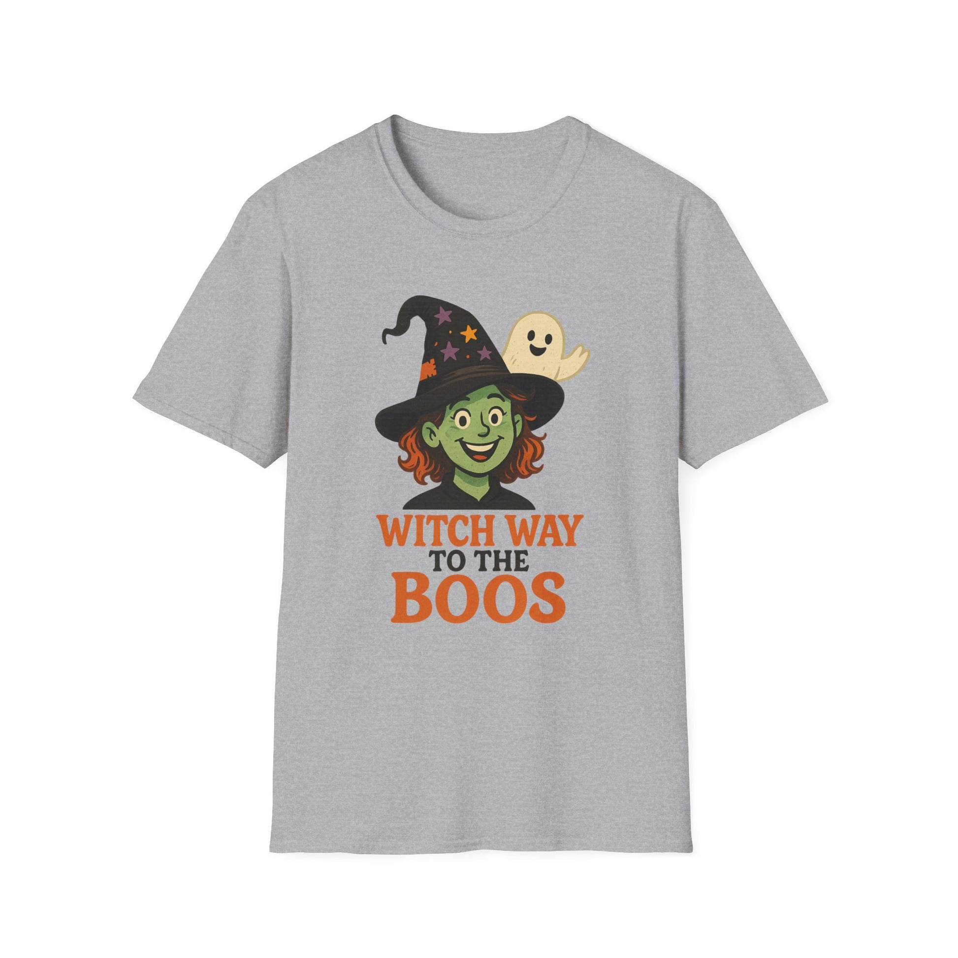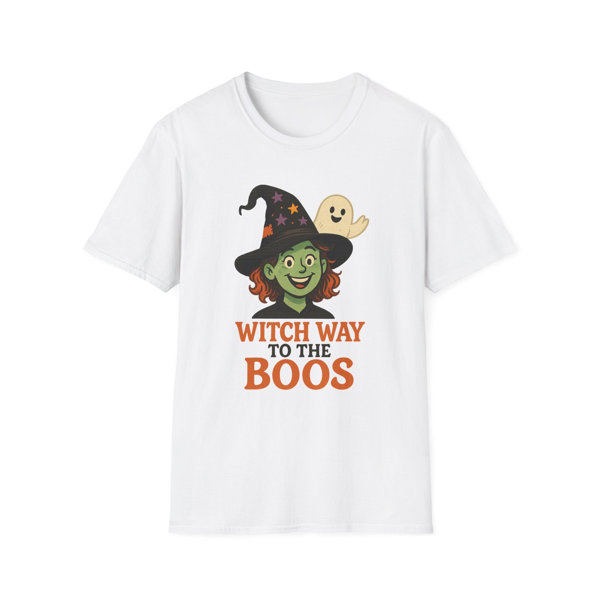 Witch Way to the Boos Halloween Shirt | Cute Witch and Ghost T-Shirt | Spooky Season Graphic Tee | Funny Halloween Costume Top