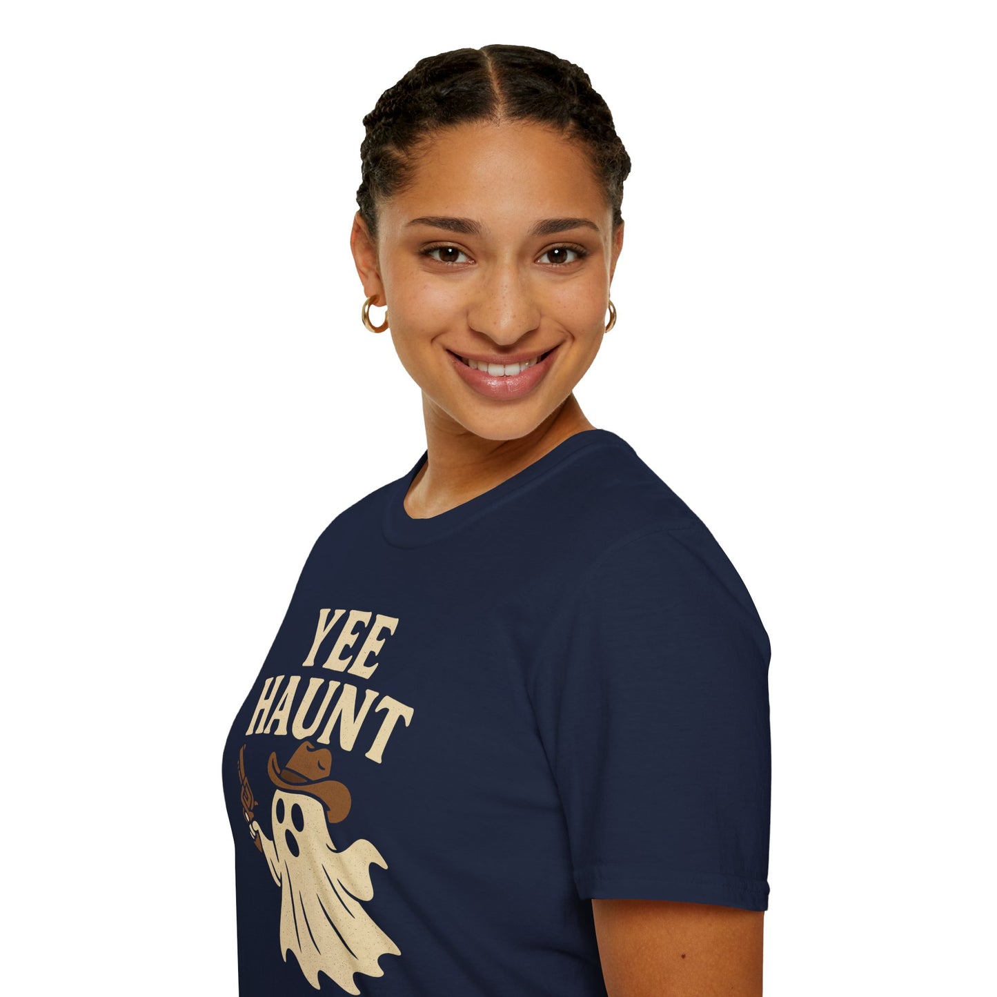 Yee Haunt Ghost Cowboy Halloween Tee - Cute Western Spooky Ghost Shirt - Boo Haw Fall Tee for Ghost Lovers - Unisex Halloween Graphic T-Shirt